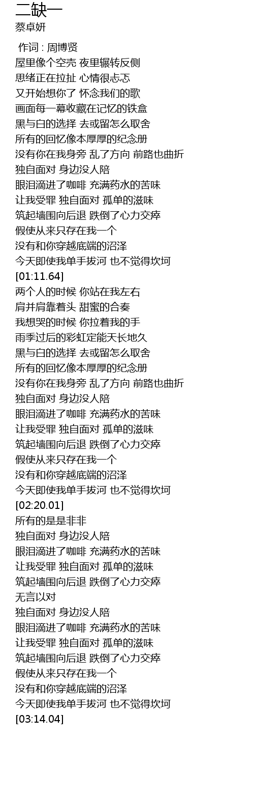 | [00:00.00] | 作词 : 周博贤 |