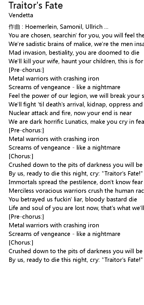 | You betrayed us fuckin' liar, bloody bastard die | |