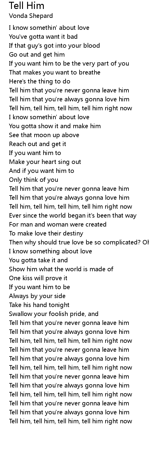 Tell him that you're never gonna leave him |