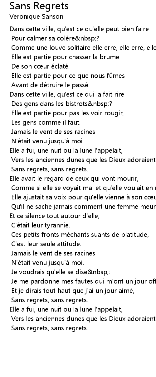 | Elle ajustait sa voix pour qu' elle vienne a son c ur, | |