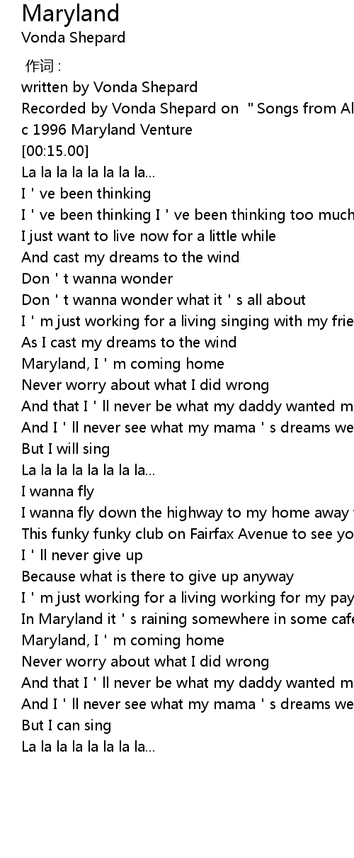 | [02:42.78] | Maryland, I m coming home |