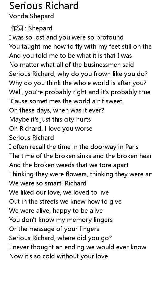 | [00:43.62] | Serious Richard, why do you frown like you do? |