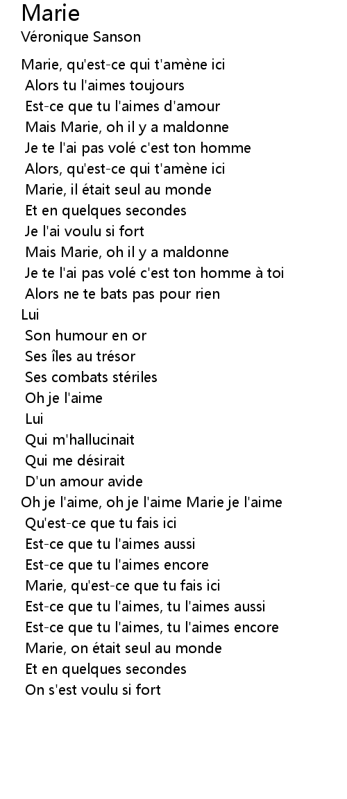| Oh je l' aime, oh je l' aime Marie je l' aime | |