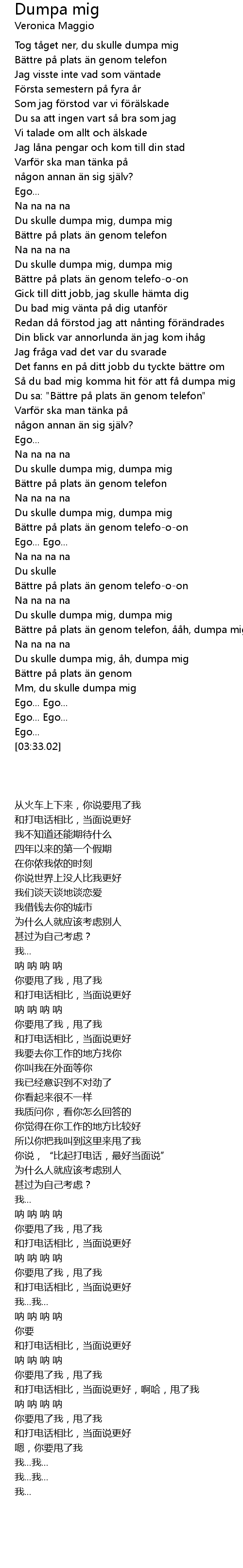 | [03:04.18] | Du skulle dumpa mig, h, dumpa mig |