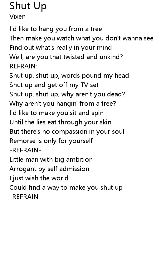 | Shut up, shut up, words pound my head | |