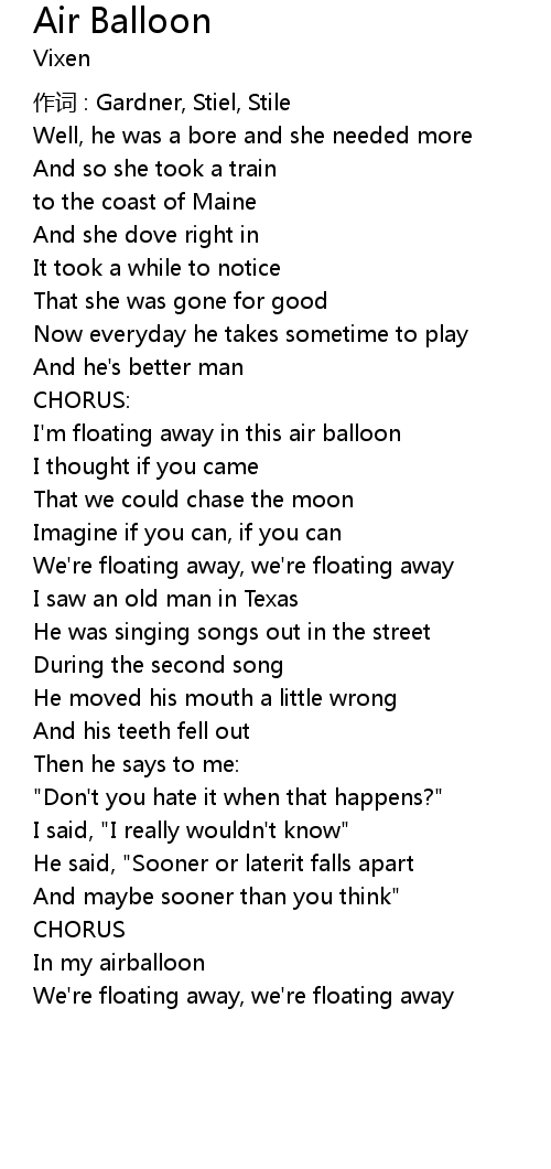 | I' m floating away in this air balloon | |