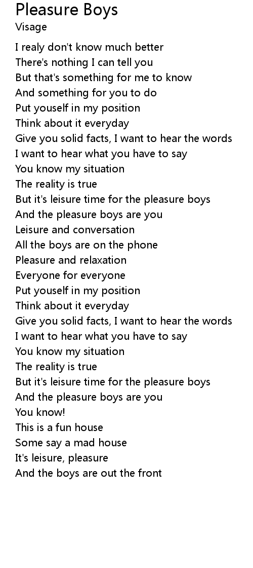 But it's leisure time for the pleasure boys |