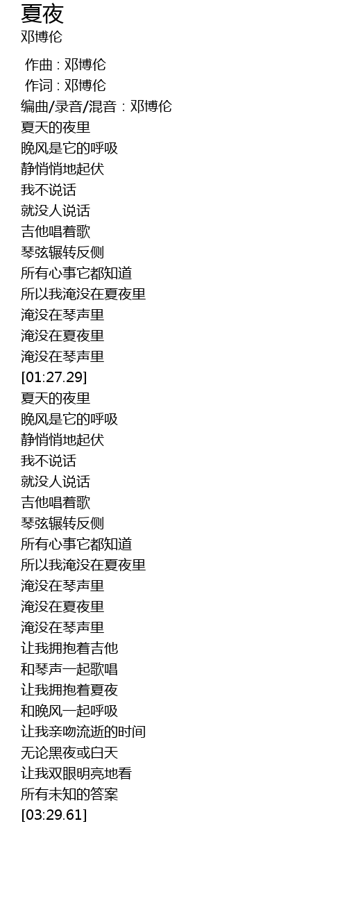 | [00:20.54] | 编曲/录音/混音:邓博伦 |