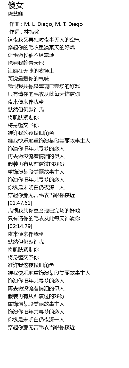 | [00:00.00] | zuo qu : M. L. Diego, M. T. Diego |