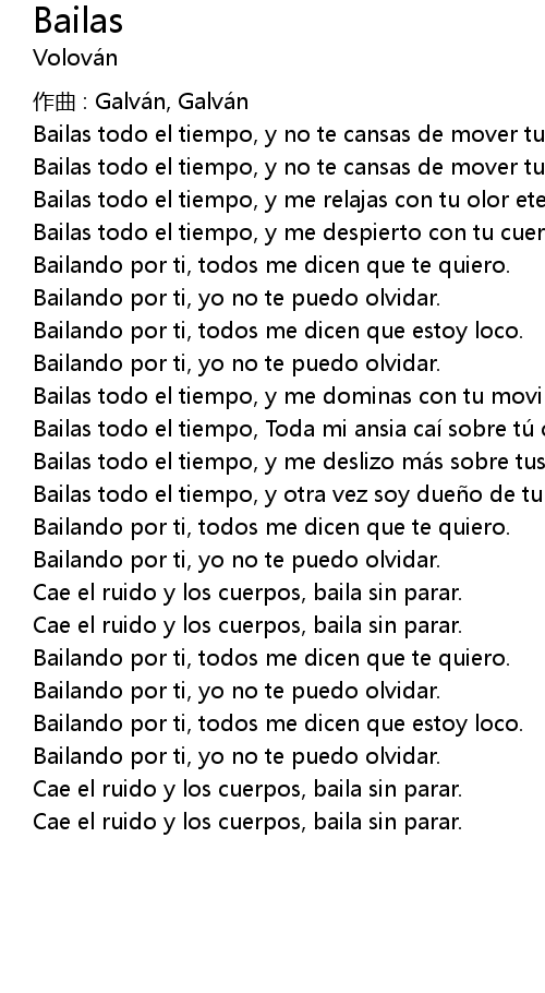 | Bailas todo el tiempo, Toda mi ansia cai sobre tu cuerpo. | |