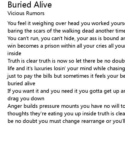 Truth is clear truth is now so let there be no doubt slippin' through my hands life and it's luxuries losin' your mind while chasing the time working so hard just to pay the bills but sometimes it feels your being buried alive being buried alive |