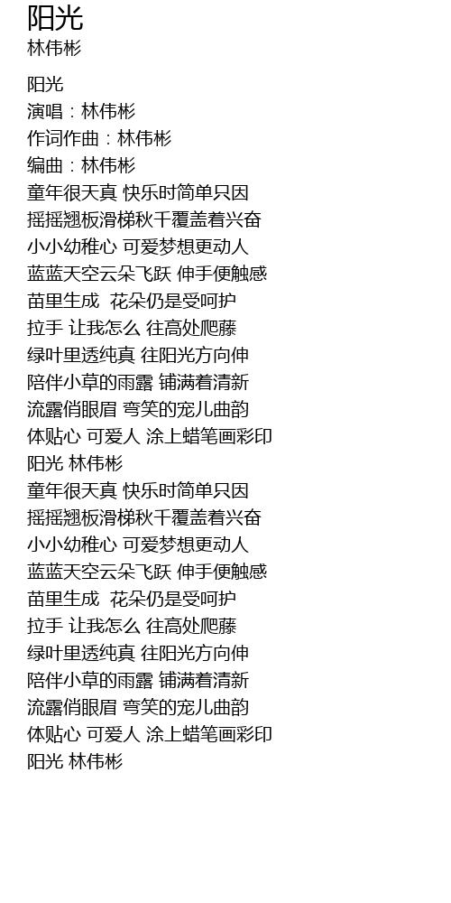 | [03:03.64] | 阳光 林伟彬 |