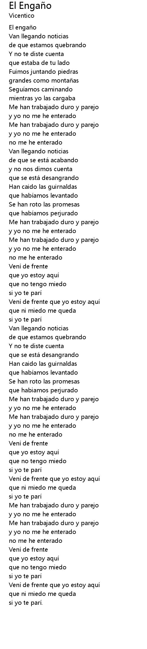 | Veni de frente que yo estoy aqui | |