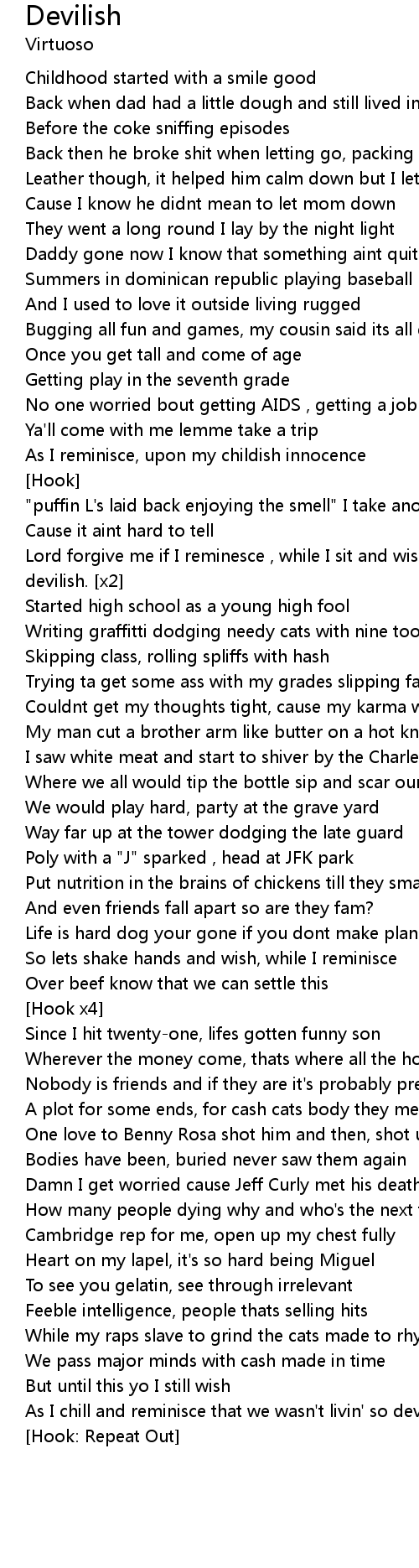 As I chill and reminisce that we wasn't livin' so devilish |