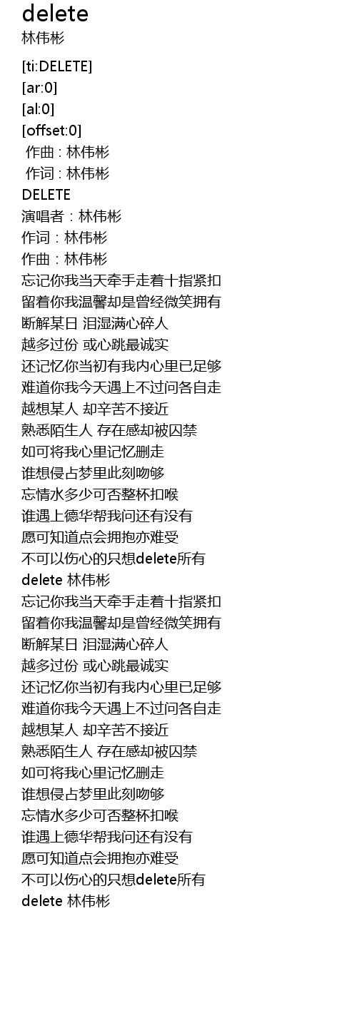 | [03:41.62] | bu ke yi shang xin de zhi xiang delete suo you |