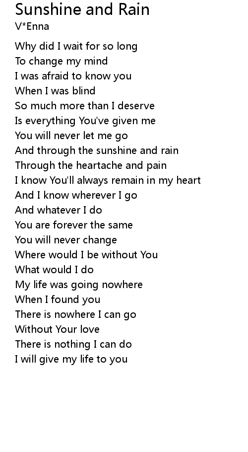 And through the sunshine and rain |