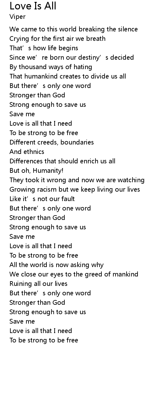 | Love is all that I need | |