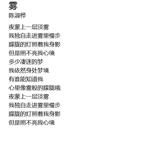 | [01:43.680] | 心里像雾般的朦胧哦 |
