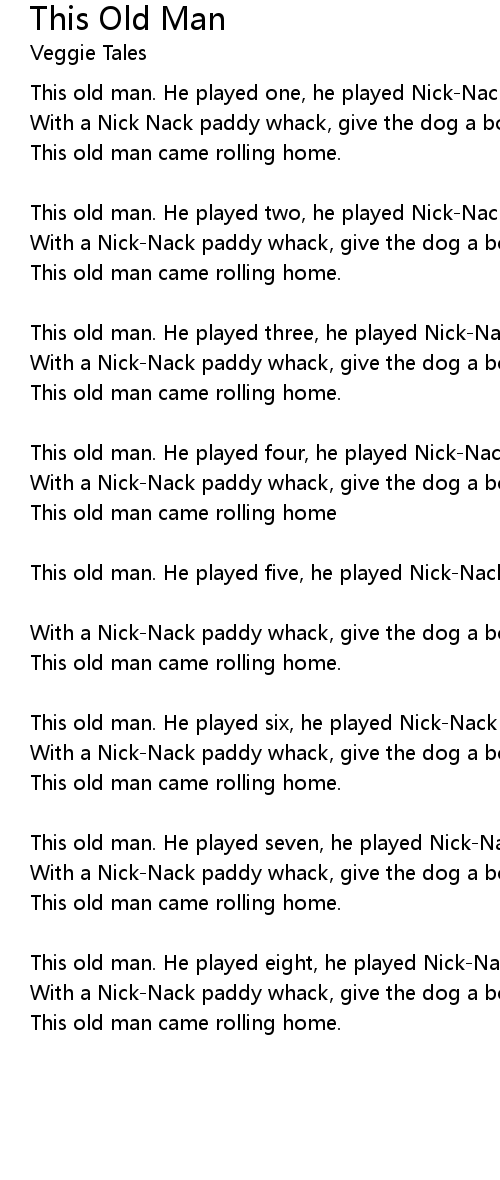 This old man. He played seven, he played Nick-Nack up to Heaven. |