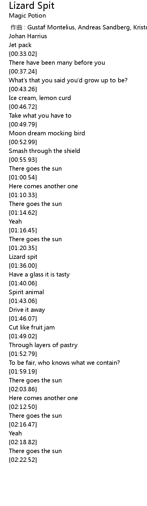 | [00:00.000] | 作曲 : Gustaf Montelius, Andreas Sandberg, Kristoffer Byström, Johan Harrius |