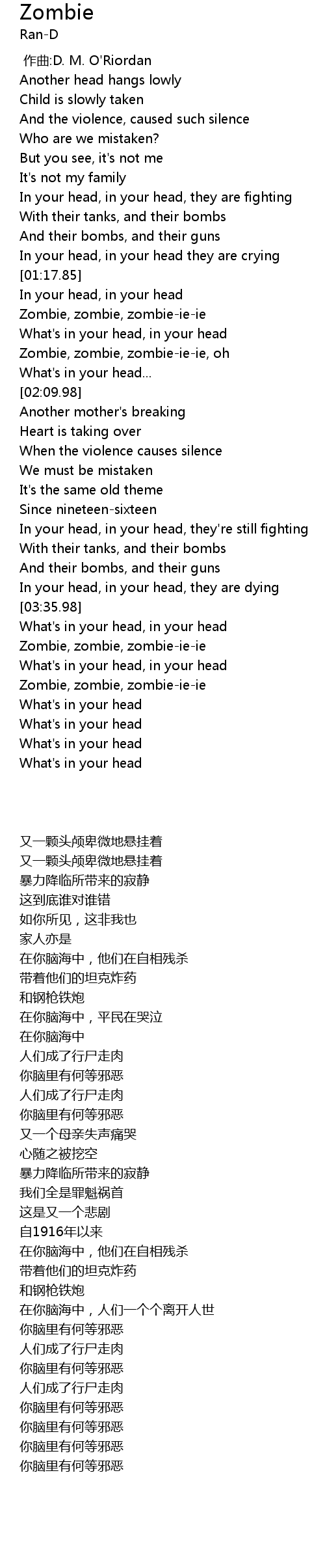 | [01:37.37] | Zombie, zombie, zombie-ie-ie, oh |