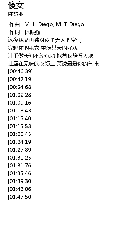 [00:00.00] 作曲 : M. L. Diego, M. T. Diego