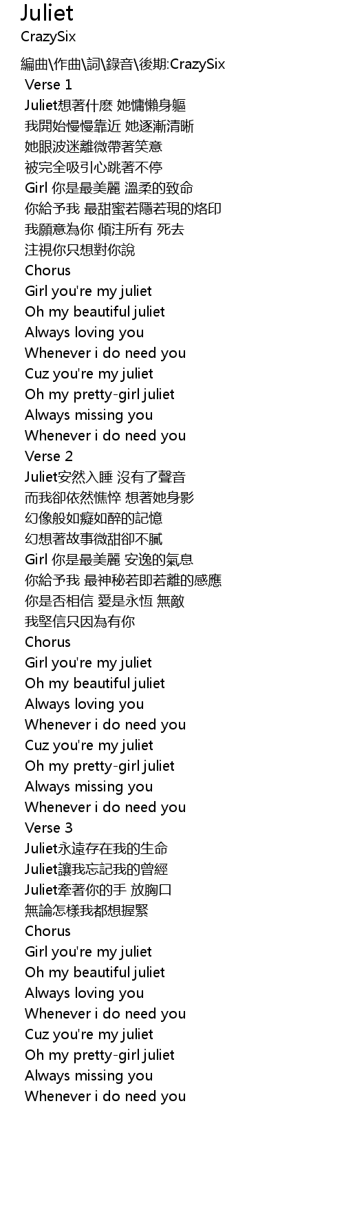 | Juliet yong yuan cun zai wo de sheng ming | |