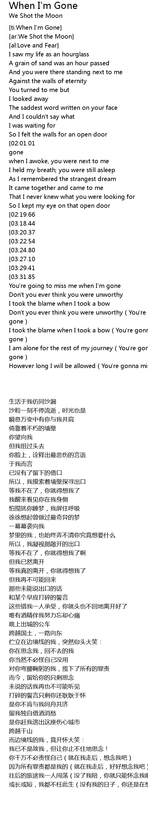 | [03:50.92] | However long I will be allowed You' re gonna miss me when I' m gone |