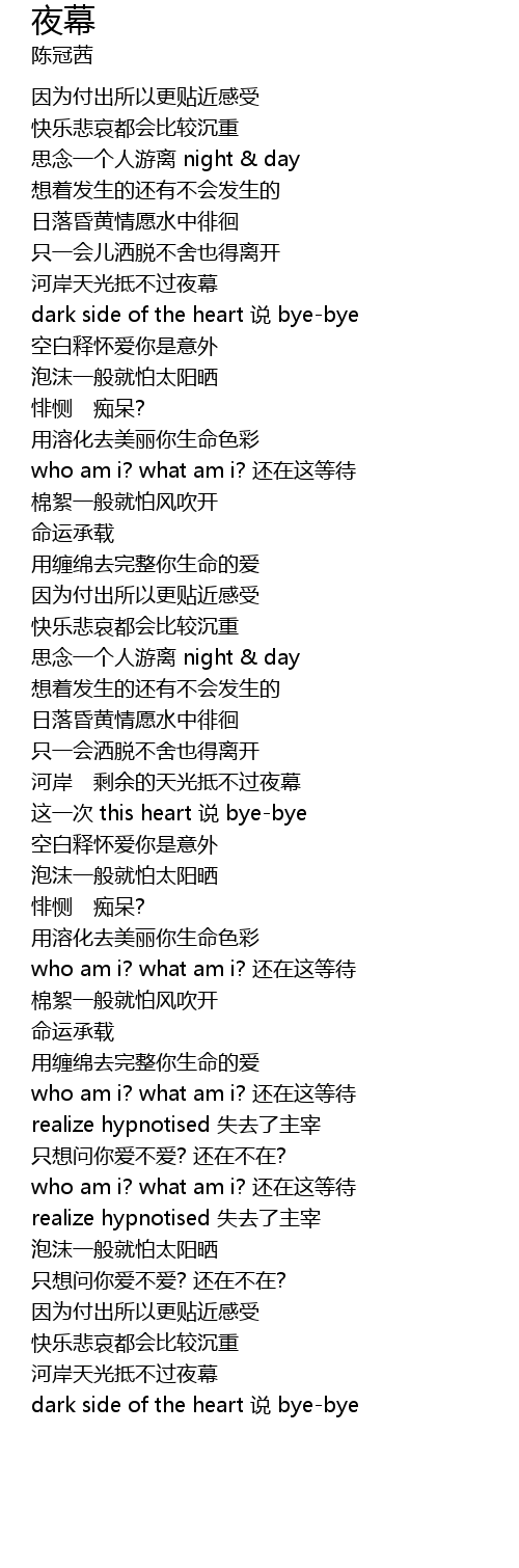 | [01:37.68] | hé àn tiān guāng dǐ bù guò yè mù |