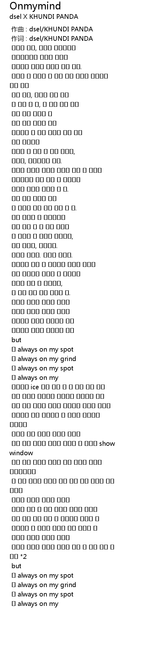 | 歌曲 | Onmymind |
