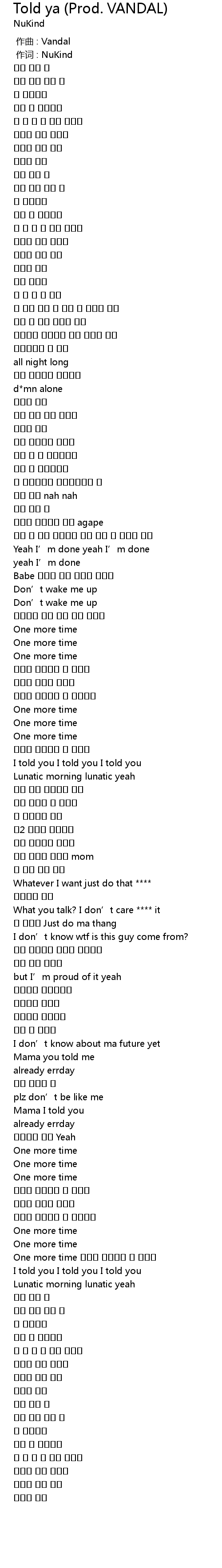 | [02:02.71] | I told you I told you I told you |