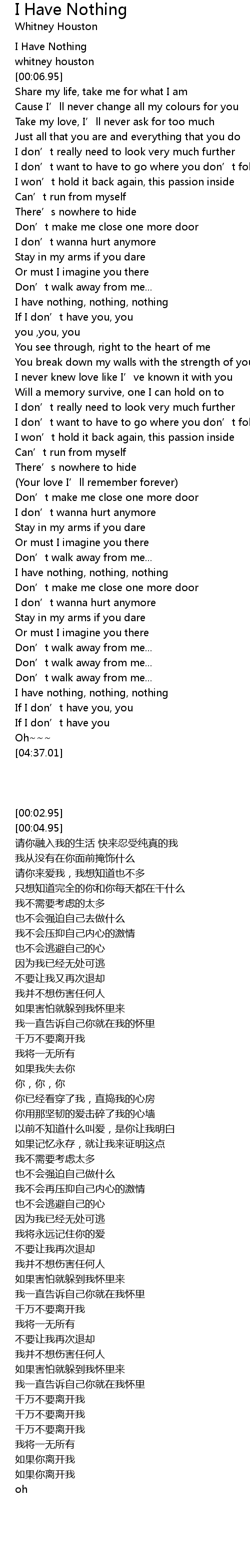 | [00:02.95] | I Have Nothing |