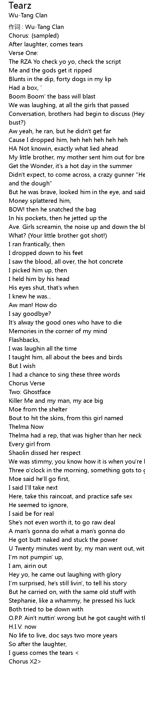 | Conversation, brothers had begin to discuss (Hey yo, Ra, remember that kid ya bust?) | |