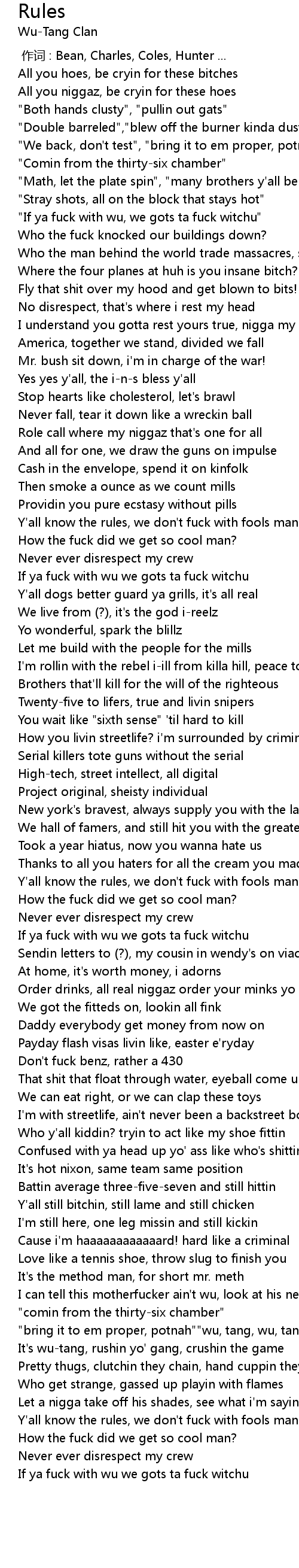 | [00:23.45] | "If ya fuck with wu, we gots ta fuck witchu" |