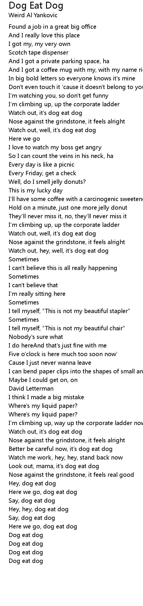 Hey, hey, dog eat dog |