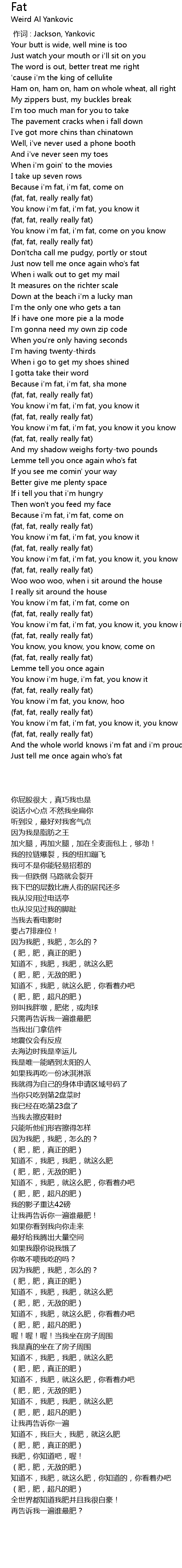 | [02:53.29] | You know i'm fat, i'm fat, you know it, you know |