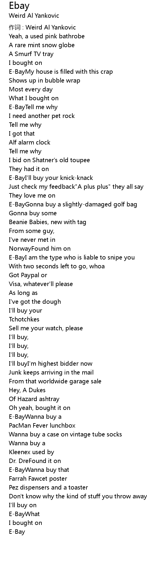 | 作词 : Weird Al Yankovic | |