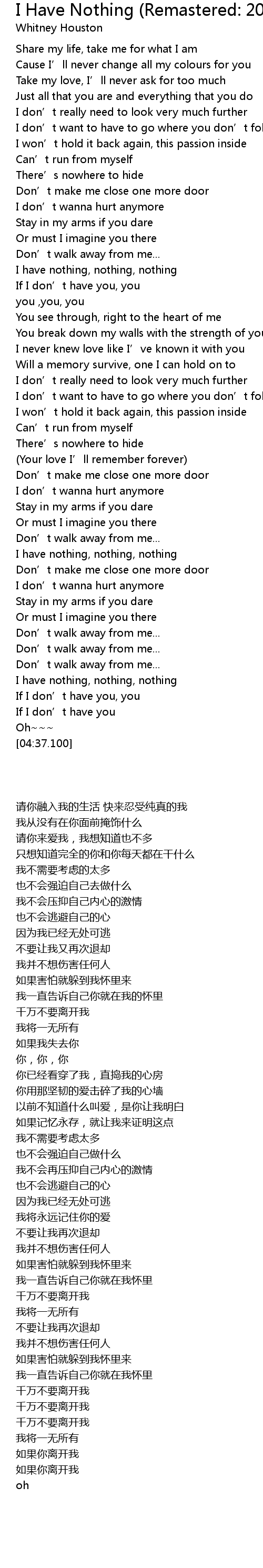 | [03:33.560] | 我将一无所有 |