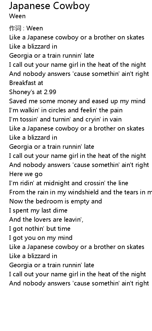 | 作词 : Ween | |