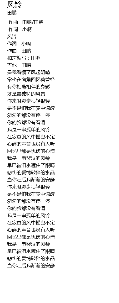 | [01:36.490] | 我是一串哭泣的风铃 |