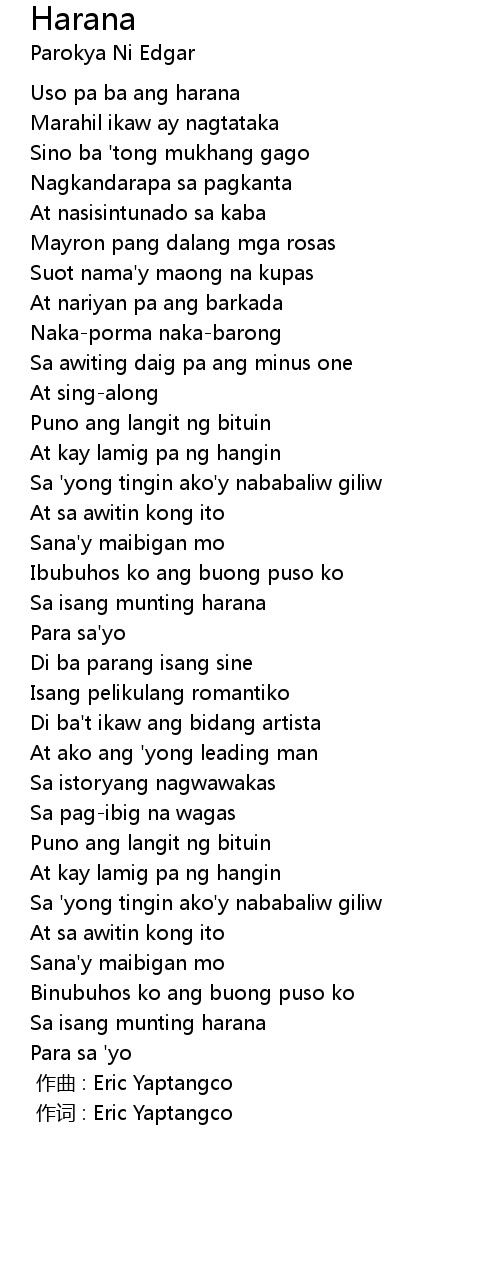 | [00:00.000] | 作词 : Eric Yaptangco |