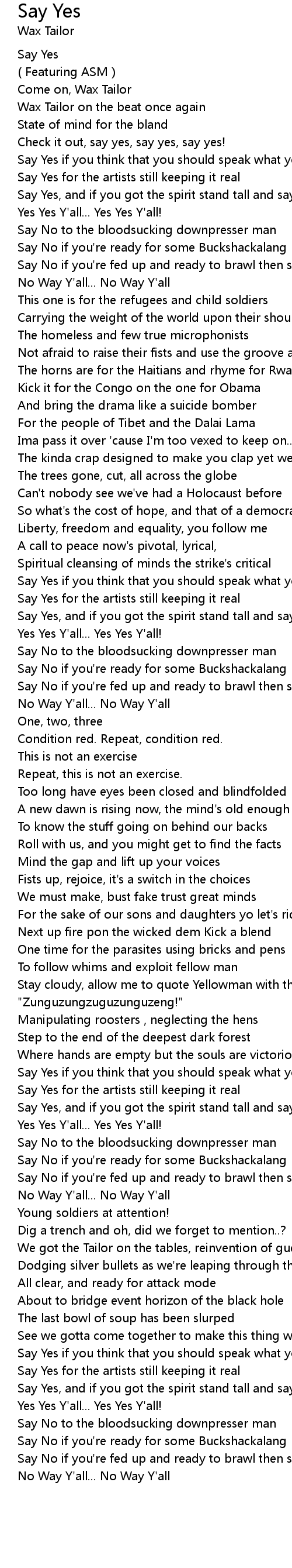 Say No if you're fed up and ready to brawl then say |