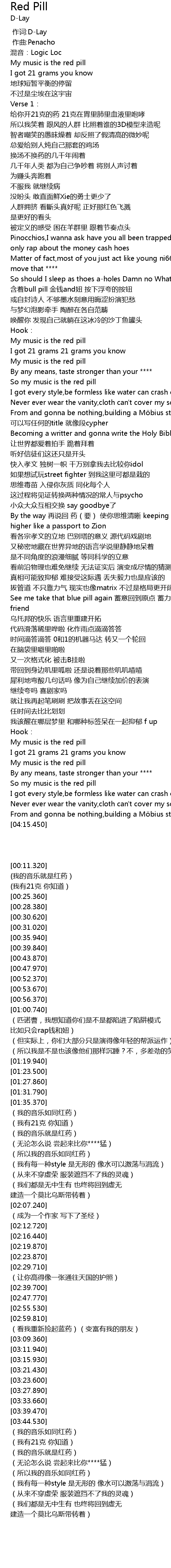 | [00:15.870] | My music is the red pill |