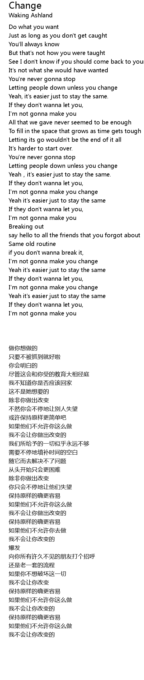 | [01:54.82] | Yeah it's easier just to stay the same |