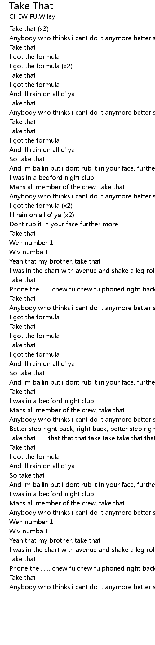 | Take that....... that that that take take take that that that | |