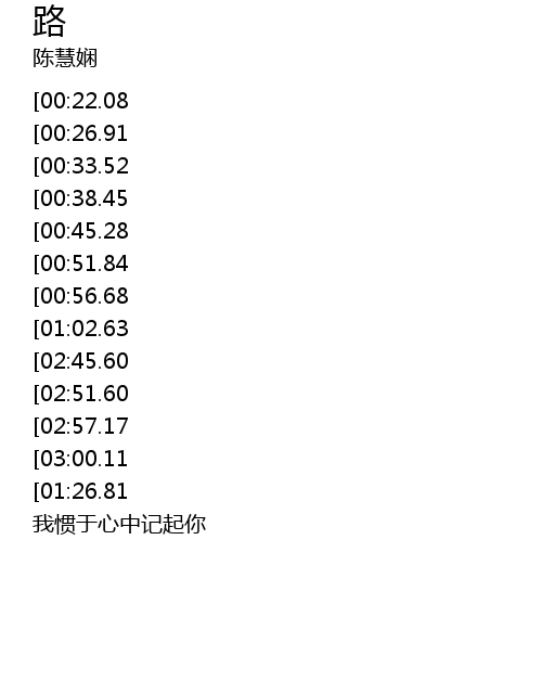 | [03:20.47][03:00.11][01:22.91] | 向着茫茫路口 |