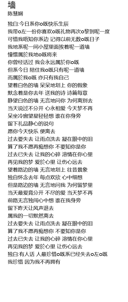 | [00:48.07] | 但系今日 陪住我o既只有呢一道墙 |