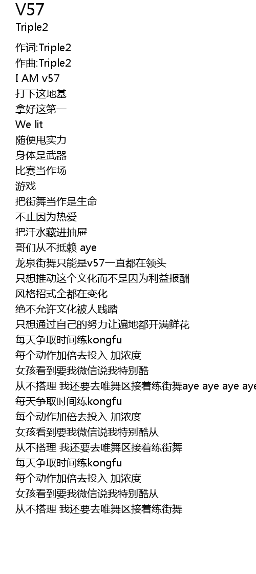 | 从不搭理 我还要去唯舞区接着练街舞aye aye aye aye | |