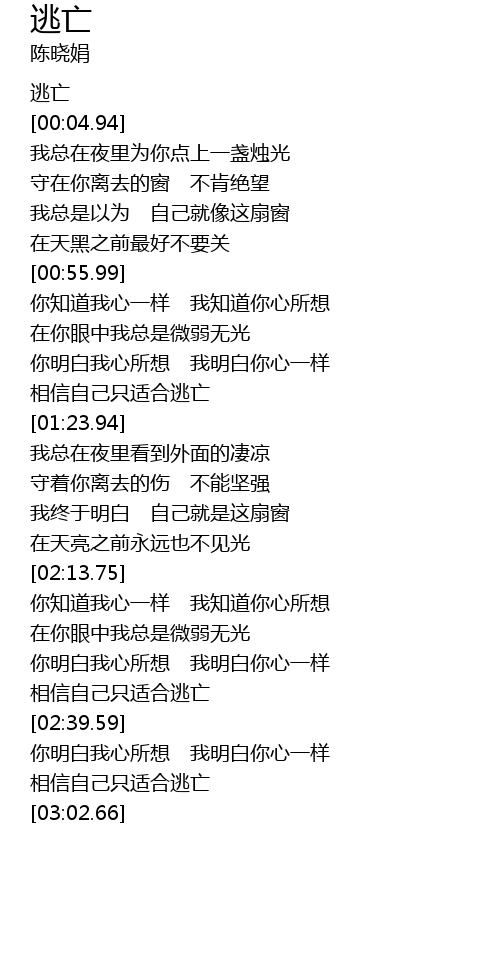 | [02:01.04] | 我终于明白 自己就是这扇窗 |