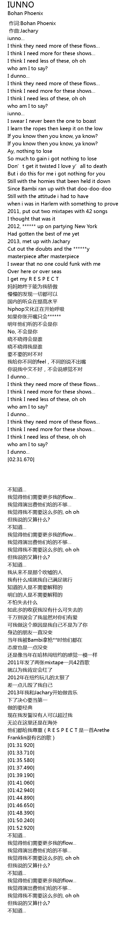 | [00:01.000] | 作词:Bohan Phoenix |
